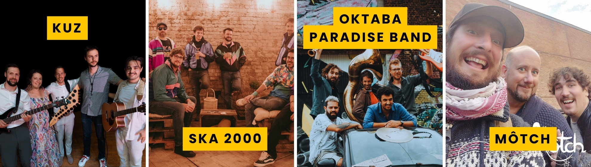 - 20h45 – Oktaba Paradise Band – Groupe festif réunissant des musiciens talentueux de toute la Wallonie. Leur style ? Un condensé de balkan-electro-rock-festif-dansant !